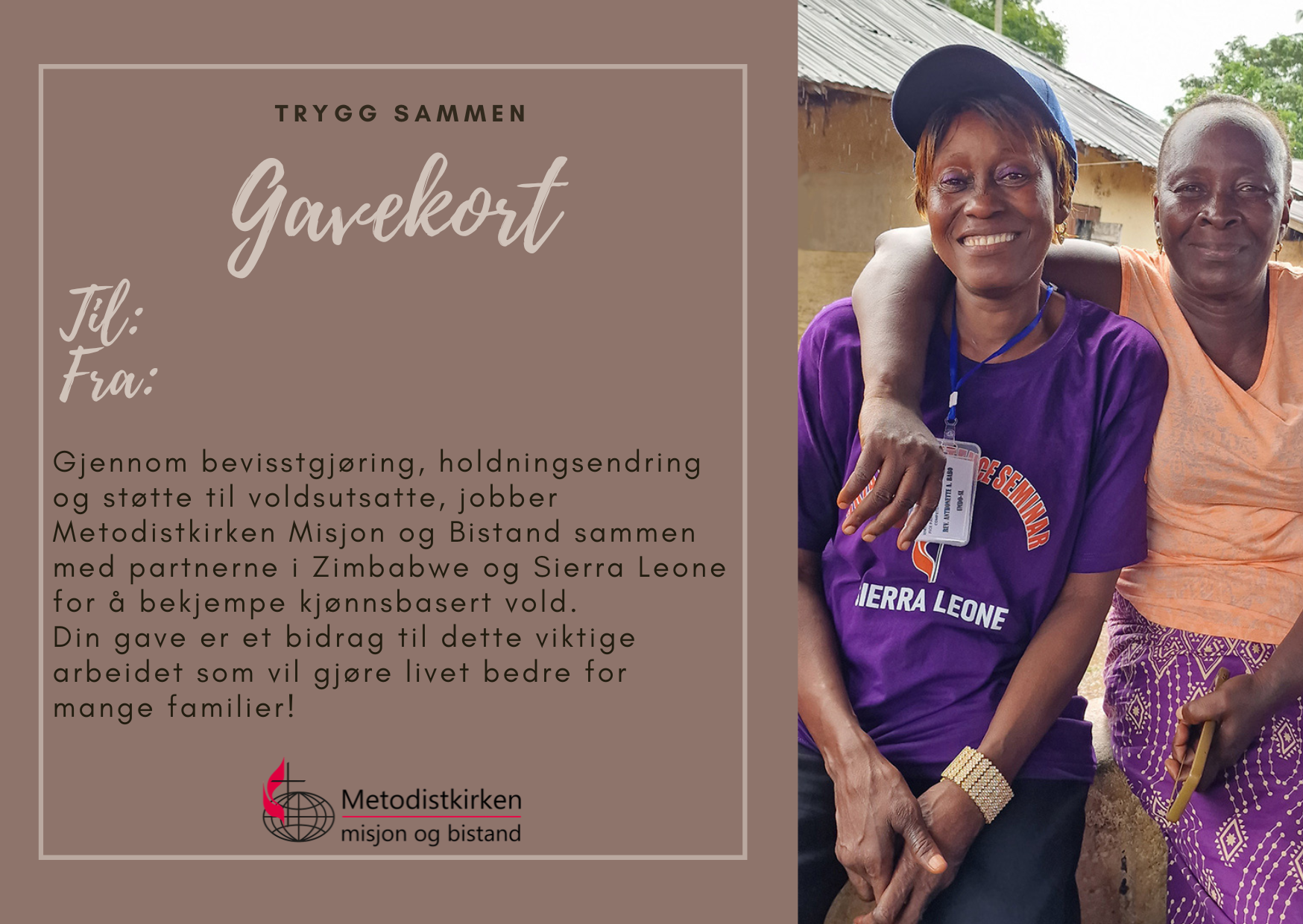 Hjelp oss å bekjempe kjønnsbasert vold i Sierra Leone og Zimbabwe. Din gave bidrar til forebygging, bevisstgjøring og støtte til voldsutsatte kvinner. Kjønnsbasert vold rammer jenter og kvinner hardest, og er et av de mest utbredte menneskerettighetsbruddene i verden.